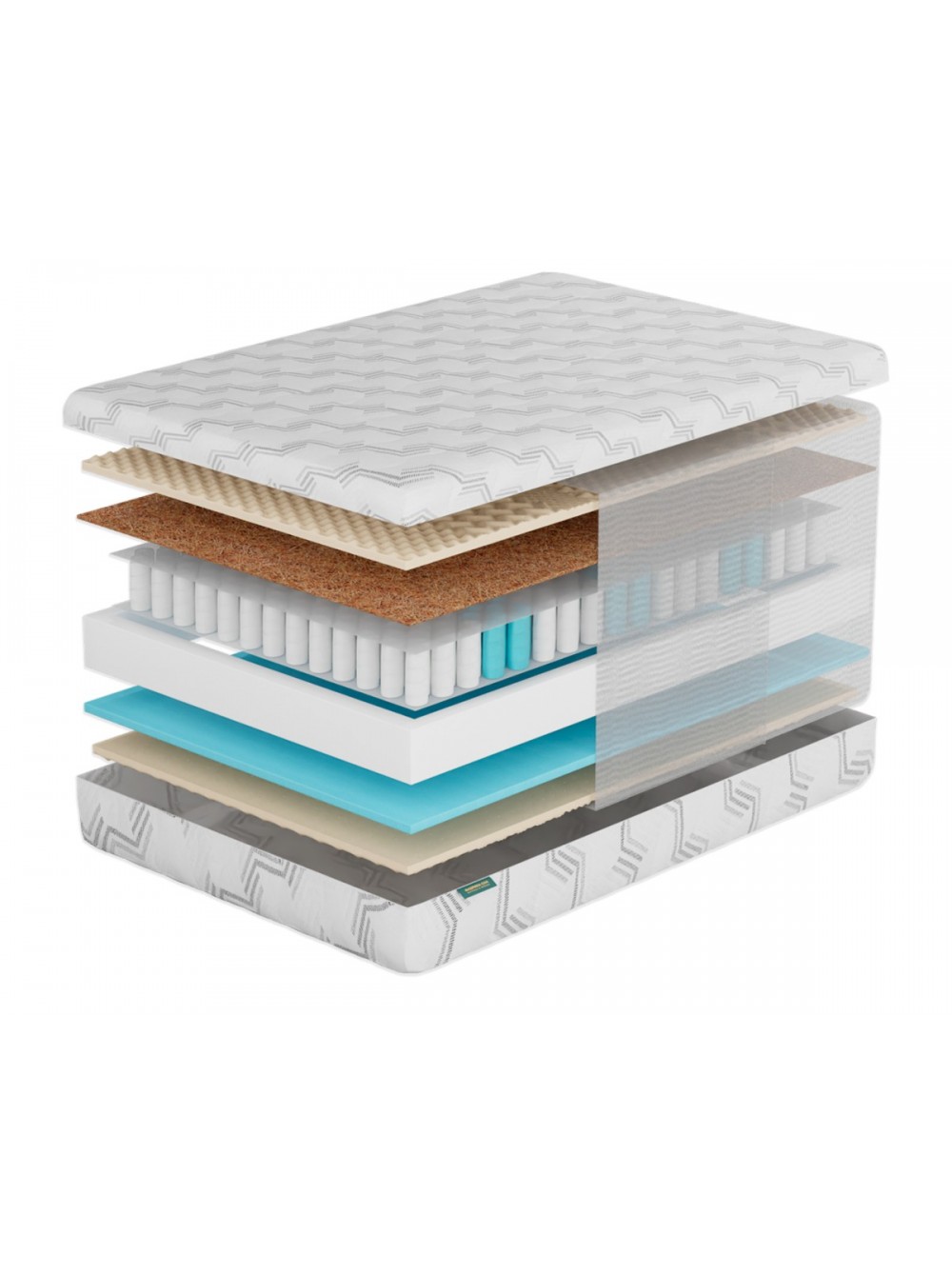 1. Съемный трикотажный  чехол Чехол выполнен из прочной трикотажной ткани, в составе которой не менее 40% натурального хлопка. Ткань простегана по технологии глубокой стежки. Особая техника стёжки позволяет равномерно, без потери формы и объёма, зафиксировать все составляющие чехла. Хлопковые нити в составе ткани обеспечивают здоровый микроклимат во время сна. Чехол имеет разъемную молнию, что позволяет стирать его в домашних условиях.