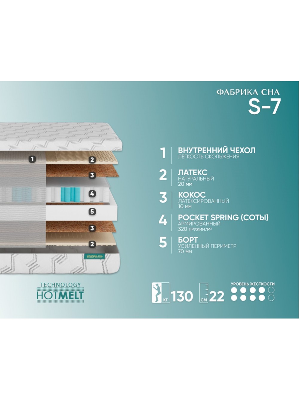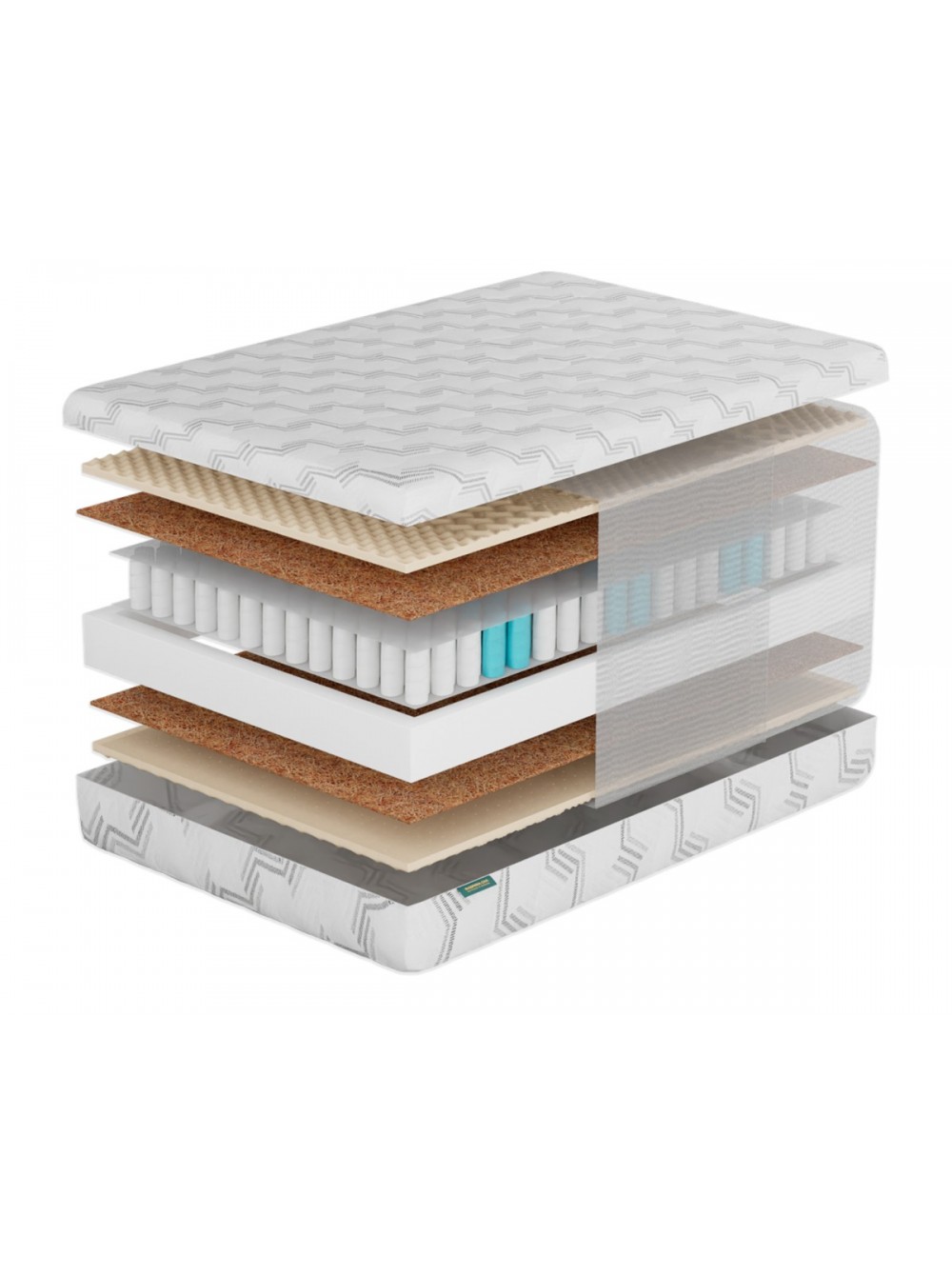 6. Пружинный блок Pocket Spring- 7 зон 14см шахматной сборки - более совершенный тип пружинного блока, каждая из пружин которого находится в отдельном чехле из нетканого полотна. Пружины работают независимо, что позволяет оптимально (точечно) распределять нагрузку тела, усиливая ортопедический эффект. Матрас обладает свойством идеально повторять контуры тела, что делает его максимально анатомическим. Благодаря точечной эластичности матраса у него отсутствует «эффект волны». Двуспальные модели такого матраса особенно подойдут для сна людям с большой разницей в весе.